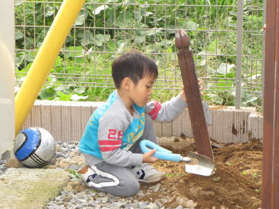 「まま~、たいへん。けいちゃんがぁ~、うんちがぁ~