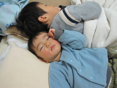 ものすごい音なのに、KOU君は爆睡。その横でパパはビデオ撮影に必死。