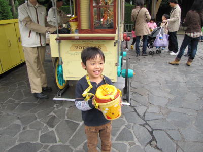 はちみつポップコーンを買ってもらって、KOU君はご機嫌です。