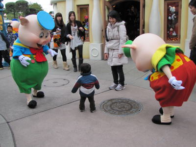 デイジーちゃんや、ドナルドも出てきて一緒に写真をと思ったけれど、KOU君もビビっちゃってなかなか近くには寄れずでした。