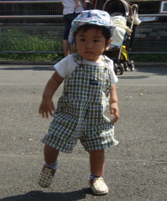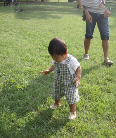 汽車ぽッぽの後は広い芝生の上で歩く練習。