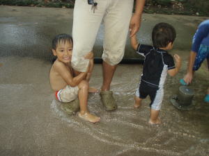 その後、KOU君とKEIたんはバシャバシャと水遊び。