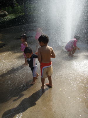 最後には2人で噴水浴びて気持ち良さそうにピチャピチャ遊びました。