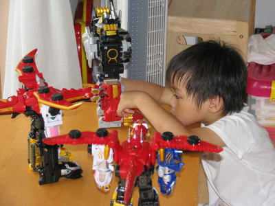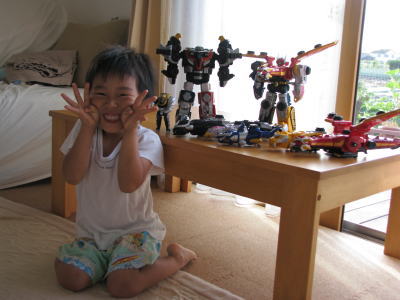 朝からゴセイジャーのおもちゃに囲まれてご機嫌で起床。