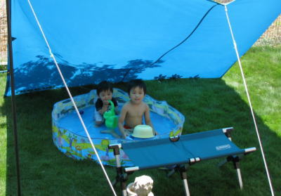 いつも暑くて30分くらいで出ちゃう2人も、タープのおかげで1時間近くゆっくり遊んでくれました。