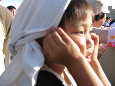 兄ちゃんのゴセイジャーショーに付き合わされたKEIたん。