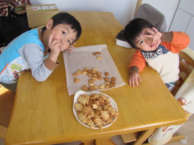 焼き立ておいしいから味見していいよと言ったら、すごい勢いで食べ始めて本気食いの2人。