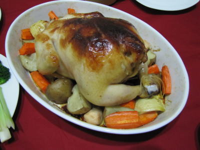 ●チキンの丸焼き(ターメリックライス詰め)&野菜添え(人参、じゃがいも、たまねぎ、にんにく)