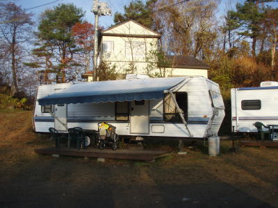 KEIたん初めての旅行は宿の宿泊では無く、キャンプ場のトレーラーハウス↓