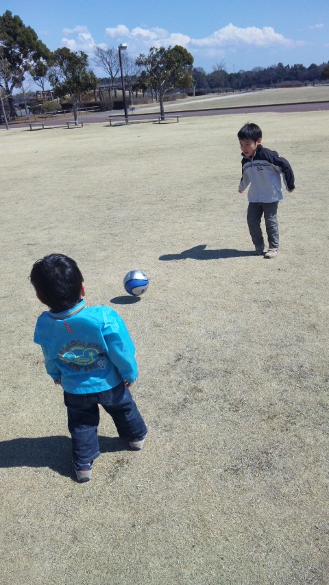 今日はお天気も良かったので、公園でサッカーボール蹴って遊んできました。