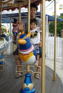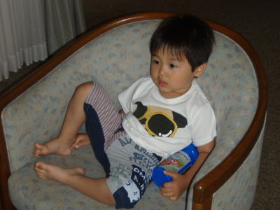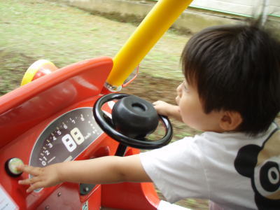 「ママ、押して~」とわが道をゆくKOU君。