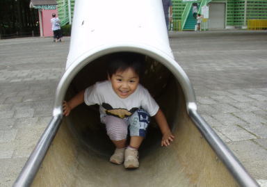 がんがんすべり台を滑り、