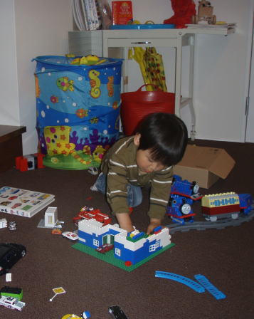 好きなブーブや電車を持って、思い思いに遊んでます。