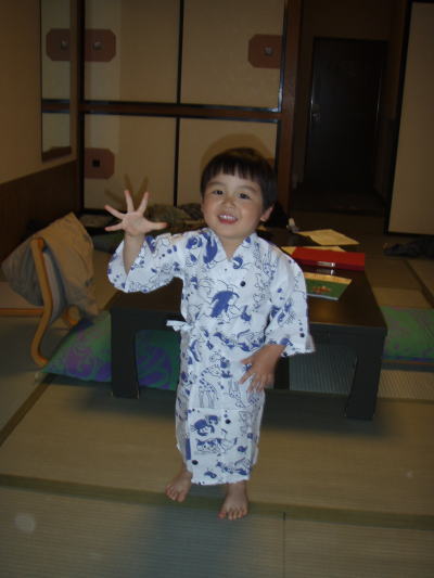 KOU君用の小さい浴衣もあったので、着せてみたら「まぁ、かわいい。」