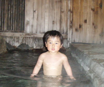 美味しい夕飯に舌鼓をうった後は、家族3人で貸切風呂へ。