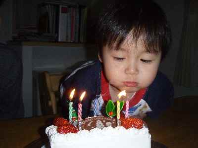 ママの作ったケーキもちゃんと「ふぅーっ!」ってろうそく吹き消して、