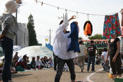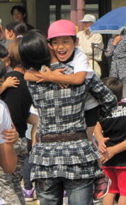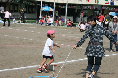 エプロンがたすき代わりだったんだけど、ママのチームだけ割烹着だったから脱ぎ着が時間かかって仕方なかったのです。