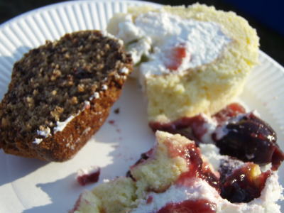 牛乳250ccを飲み干し、Sさん奥様が持って来てくれた手作りシフォンケーキを、