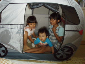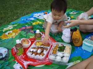 ママとKOU君は芝生の上にレジャーシート敷いてのんびり。