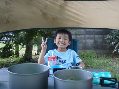 とりあえずパパがテントとタープを設置してくれました。