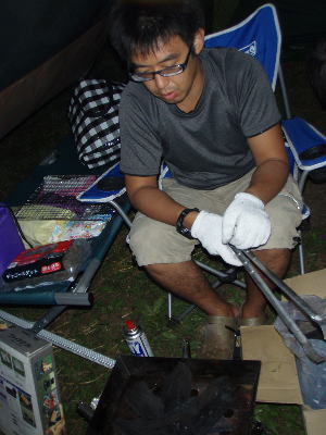 夕飯は炭火焼きでバーベキュー。