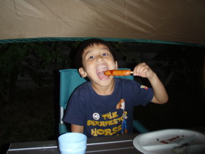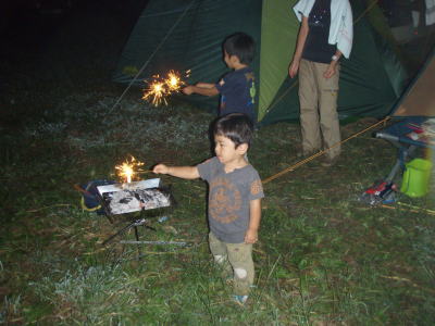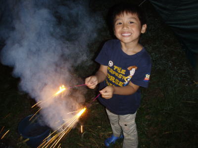 お腹いっぱいになった後は、KOU君が楽しみにしていた花火。
