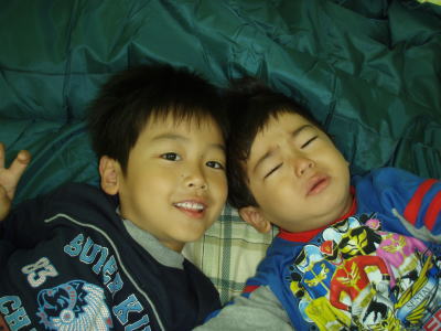 たーくさん水遊びして、花火もできて、大満足で眠りについたKOU君です。