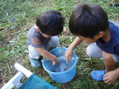 お昼を食べたら、お待ちかねの水遊び。