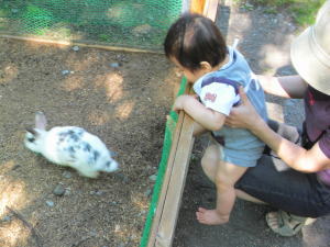 うさぎさんの前では柵に手をかけて身を乗り出してみてました。