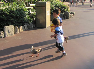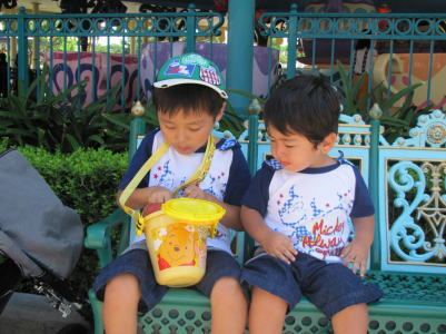 プーさんのファストパス時間まで少しあったので、子供達はあっちこっち音を鳴らしたりして遊びます。