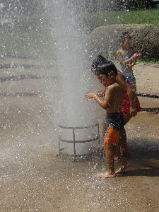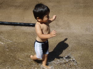 2人とも久々の噴水水遊びに大はしゃぎ。