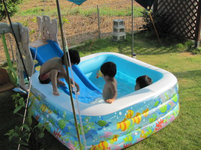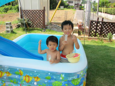 ほとんどおむつ1枚で走り回って大はしゃぎ。