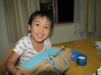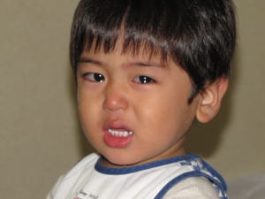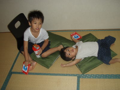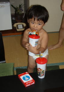 KEIたんは、夕飯食べた後に到着時に宿のおかみさんから頂いたお菓子(ビスコ)を食べたくてママに開けてとせがみ、ママが開けなかったもんだから、目から涙がポロリ。