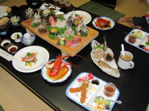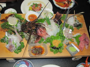 伊勢海老が御造りになりつつも動いてる様子を見て、子供達も大興奮。
