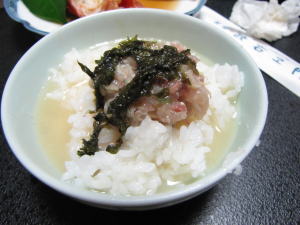 アジのなめろうをご飯にのせて、上から出し汁をかけて頂きました。