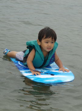 いっちょまえに足のつかないところでボディーボードも乗りこなしてました。