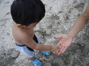 KEIたんも時々貝殻を拾って、ママのところに持ってきてくれました。