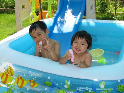 長時間だったらばぁばに預けて・・・とも思ったけど、たったの15分だから2人とも連れて行っちゃいました。