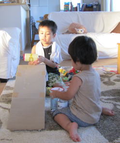 面接が始まって、KEIたんは教室の中の目新しいおもちゃで遊び始めました。
