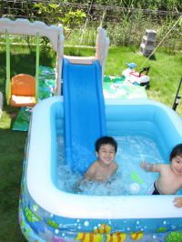 役員さん達が子供達のために用意してくれた、プチ祭りでお魚釣りゲームを楽しんでました。