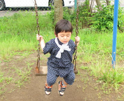 KEIたんとパパは始まるまで、のんびり園庭で遊んでました。