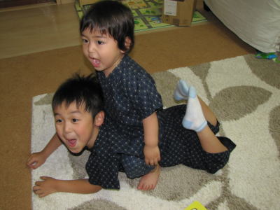 KOU君が幼稚園行っていいか聞いて聞いてとママをつつくけど、