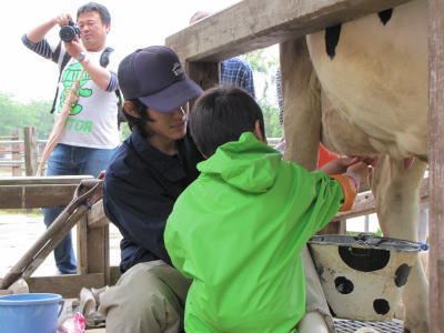 ママは早いうちに本物の乳しぼりをやらせてあげたかったのです。