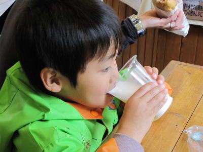 KOU君は「うしさんから、ぎゅうにゅうがでてきたんだよ。あったかくて、やわらかかったよ。」と。