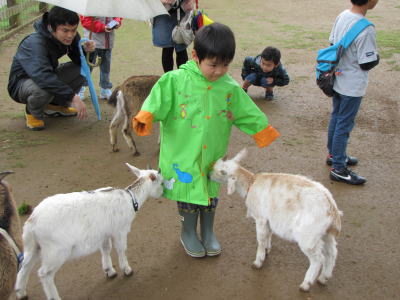 入園してから早くここに行きたくて楽しみにしてた2人は、嬉しそうにヤギさんと戯れてました。