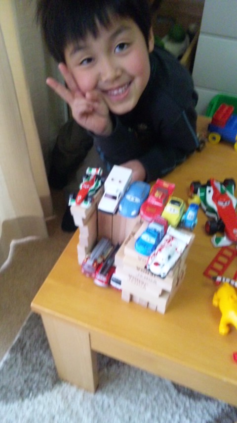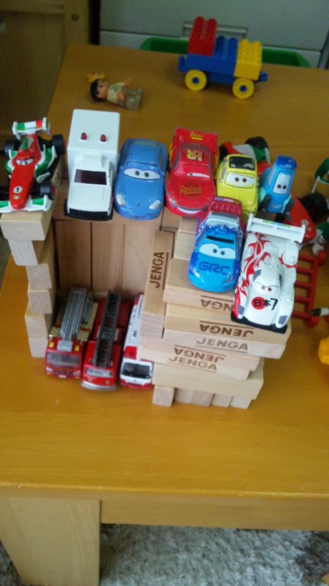 KOU君は、ジェンガで立体駐車場を作ってます。