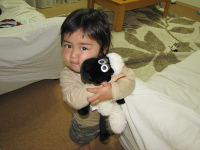 お家に帰ってきて、ショーンを抱っこしながら、ショーンを観てます。