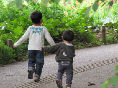 お兄ちゃんの方はカメラのフレームに納められないくらい、ウロウロしまくり。