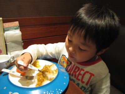 KOU君はお子様カレー、KEIたんはお子様ハンバーグをがっつり食べた後、