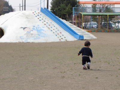 バスを降りたKOU君は・・・少し歩いて「まま、おしっこしたい。」と。